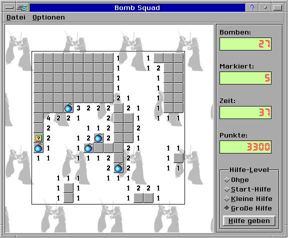 Bomb Squad ist der klassische Minensucher. Hinter jedem Feld könnte sich eine Mine verbergen. Aufgedeckte Felder verraten, wie viele Minen sich in der Nachbarschaft befinden. Ein Spiel mit hohem Suchtfaktor, dass neben guter Kombinationsgabe bei größeren Spielfeldern auch gehöriges Maß an Konzentration erfordert. Unterschiedliche Schwierigkeitsgrade garantieren Erfolge sowohl für Anfänger als auch für Profis.