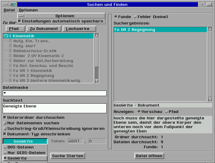 eien Vorschau auf die erste gefundene Textstelle oder der Pfad zur Datei angezeigt. Auf Wunsch können